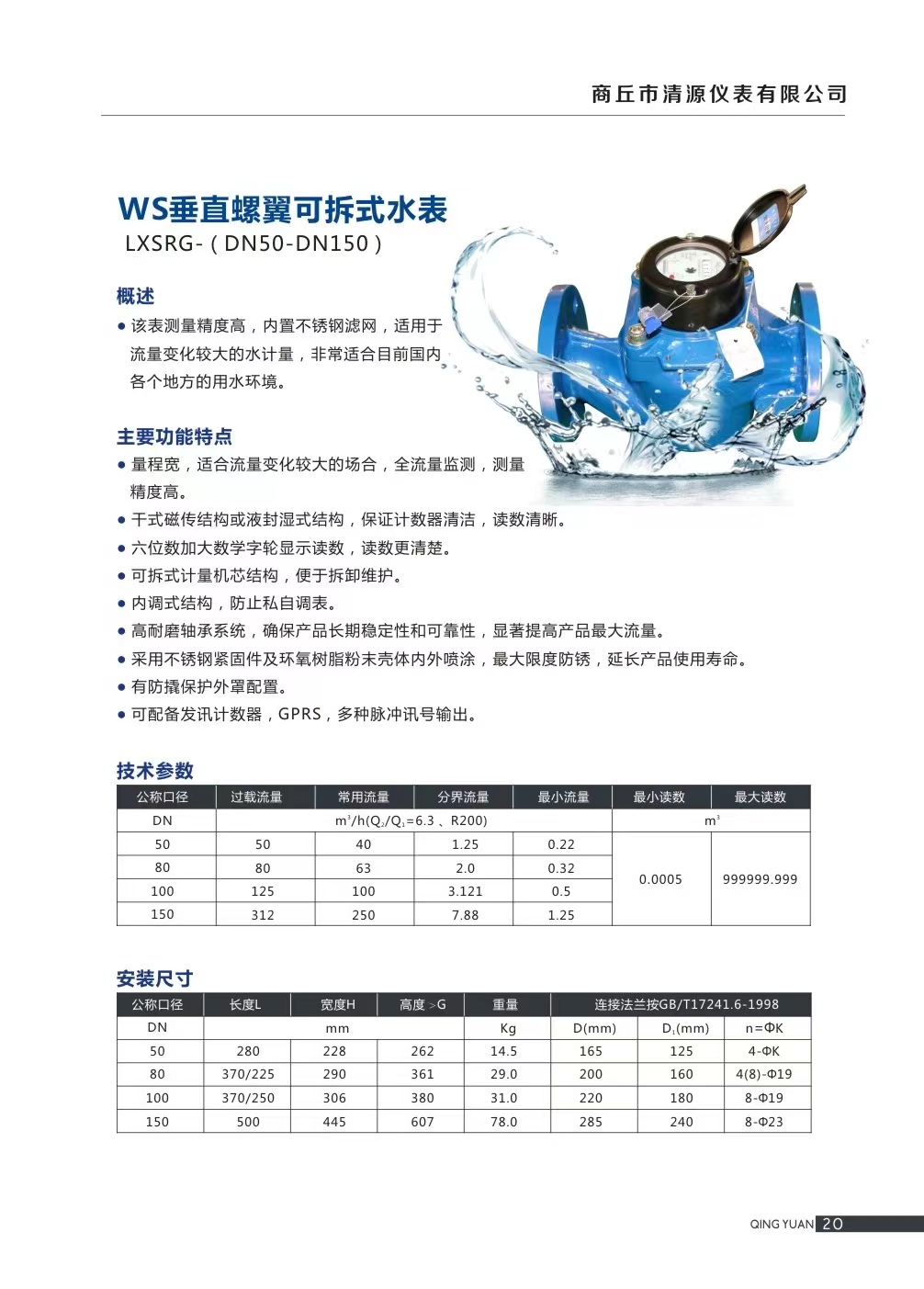 垂直螺翼式冷水表 DN50